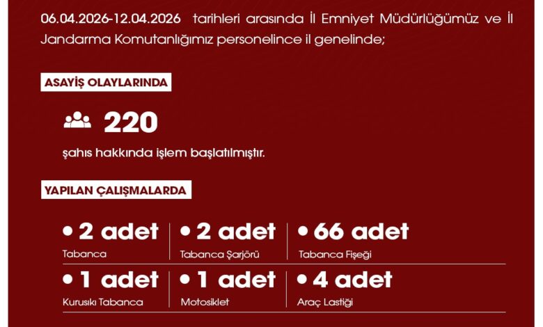 Niğde Valiliği İl Basın ve Halkla İlişkiler Müdürlüğü, 06.04.2026 – 12.04.2026 tarihleri arasında İl Emniyet Müdürlüğü ve İl Jandarma Komutanlığı ekiplerince il genelinde gerçekleştirilen operasyon ve denetimlerin sonuçlarını paylaştı. Şehrin huzur ve güvenliği için yürütülen çalışmalarda çok sayıda suç unsuru…