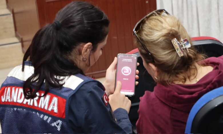 Jandarma ekipleri, KADES uygulamasının kullanım adımlarını örneklerle anlattı.