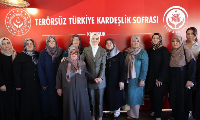 Aile ve Sosyal Hizmetler Bakanı Mahinur Özdemir Göktaş, ‘Terörsüz Türkiye Kardeşlik Sofrası’ buluşmaları kapsamında Karabük’te şehit aileleri, gaziler, sivil toplum kuruluşları temsilcileri ve kanaat önderleriyle bir araya geldi. Bakan Göktaş, Cumhurbaşkanı Recep Tayyip Erdoğan‘ın selamlarını ileterek, şehit yakınları ve gazilerle yakından ilgilendi.