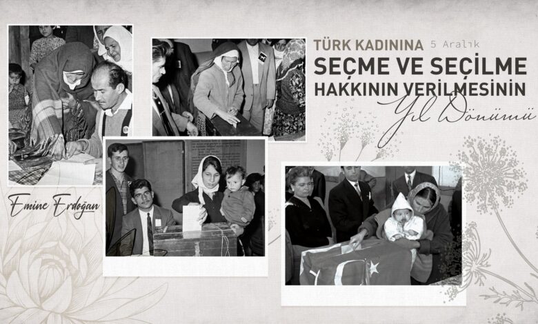 Cumhurbaşkanı Recep Tayyip Erdoğan’ın eşi Emine Erdoğan, Türk kadınının seçme ve seçilme hakkını kazanmasının 91’inci yıl dönümünü sosyal medya mesajıyla kutladı.